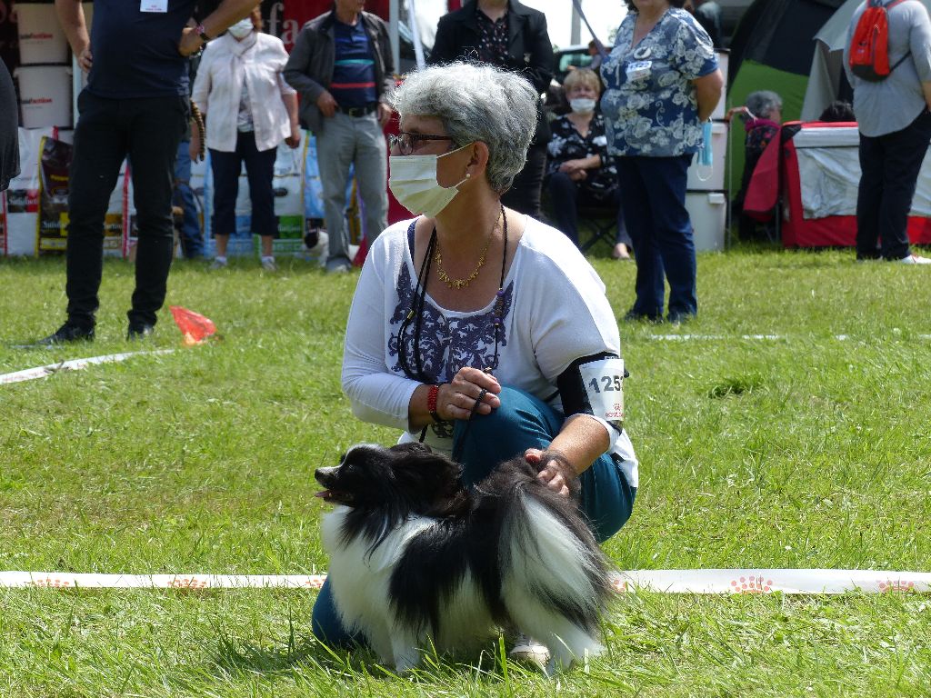 bicolore noir ébauche de liste,oreilles bien placées avec franges,oeil bien foncé,truffe bien aplatie,tb rapport c/c,ex denture, ex qualité de poil ,ant bien// avec pieds de lièvre,ex poitrine, dos bien soutenu, le fouet bien inséré ,joli panache,ex musculature , très jolie construction bien solide,un peu chargé en couleur, très beau mouvement