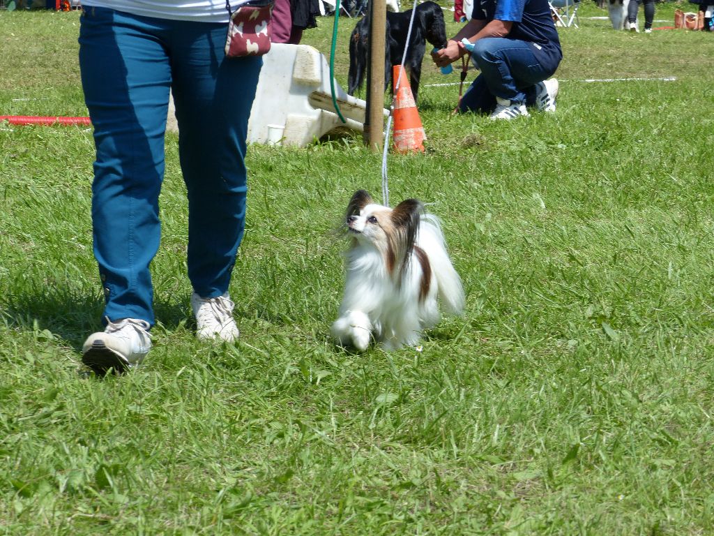 bonne petite chienne typique de sa race, bon tête , bon oreilles, bon mâchoire, exc ligne de dos, exc epaules exc angul AR marche un peu découdée Av marche avec brio !